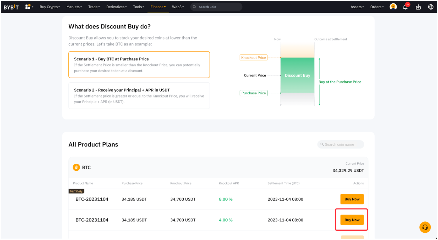 Visita la página Bybit Discount Buy haciendo clic en Finanzas → Earn → Discount Buy en la barra de navegación.
