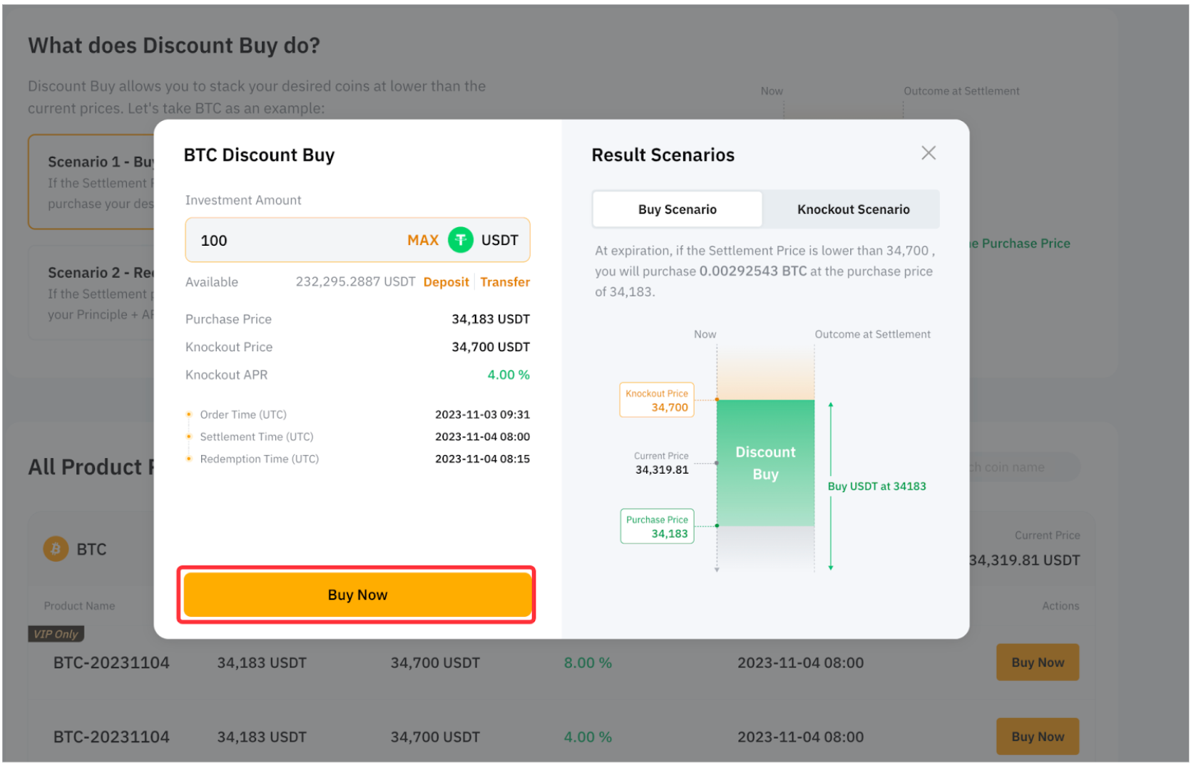 - Si el precio de liquidación es igual o superior al precio límite, recibirás tu capital y obtendrás ingresos adicionales por APR en USDT.