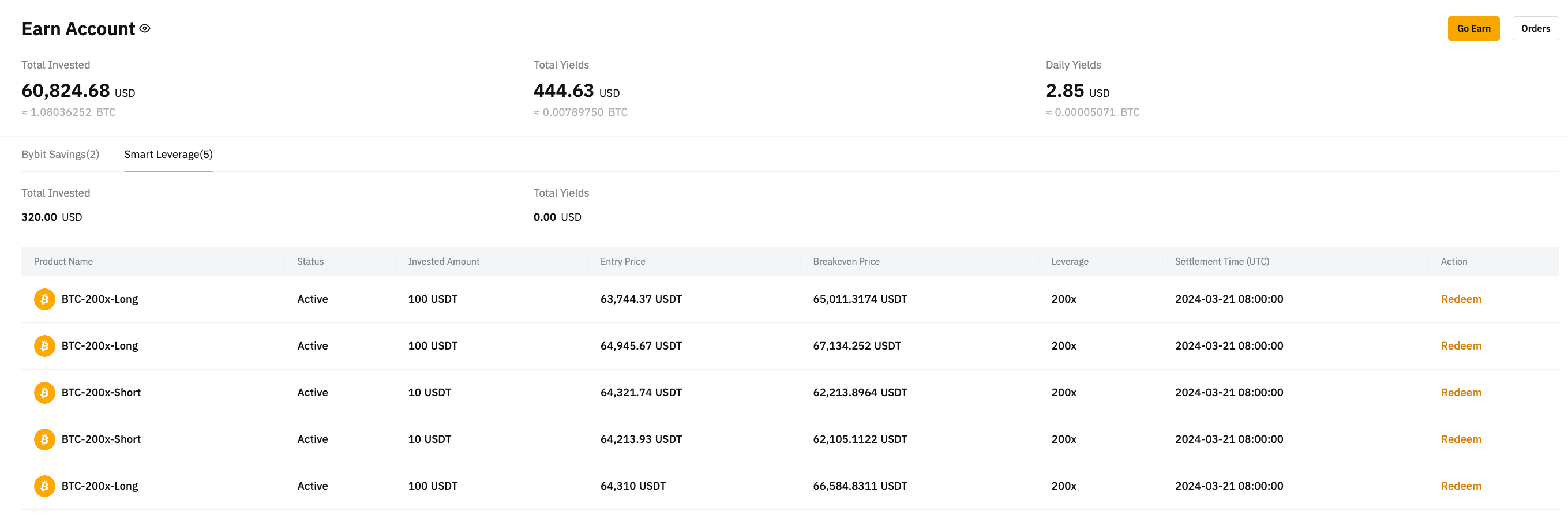 Visita la página Smart Leverage de Bybit haciendo clic en Finanzas → Earn → Smart Leverage en la barra de navegación.