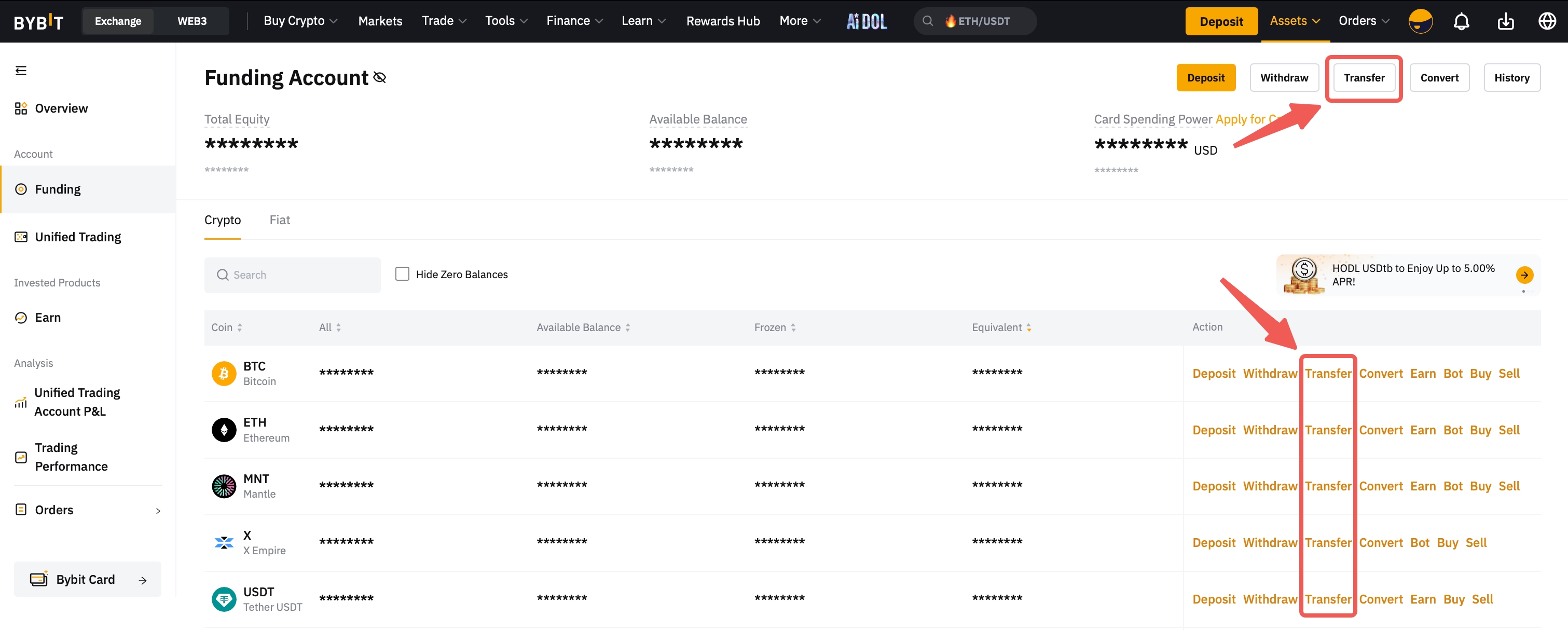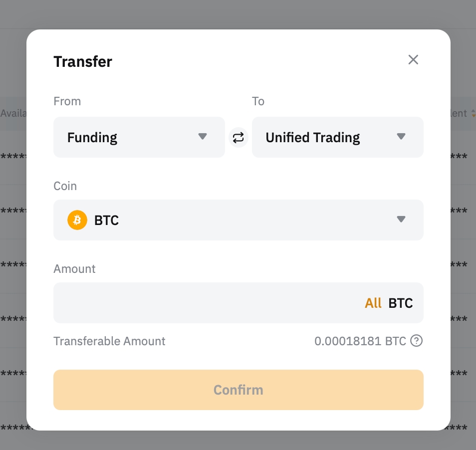 Aquí tienes una guía detallada para ayudarte a transferir activos entre tus cuentas de fondos y trading unificado en Bybit.