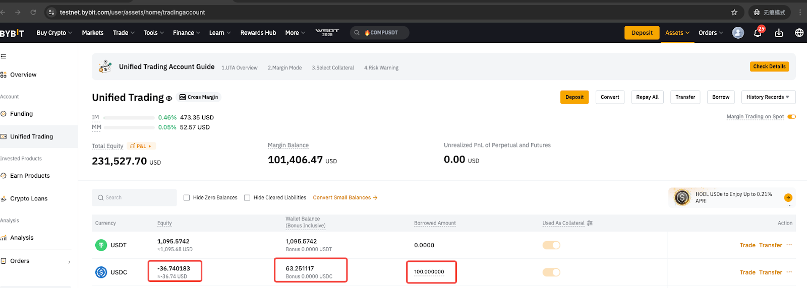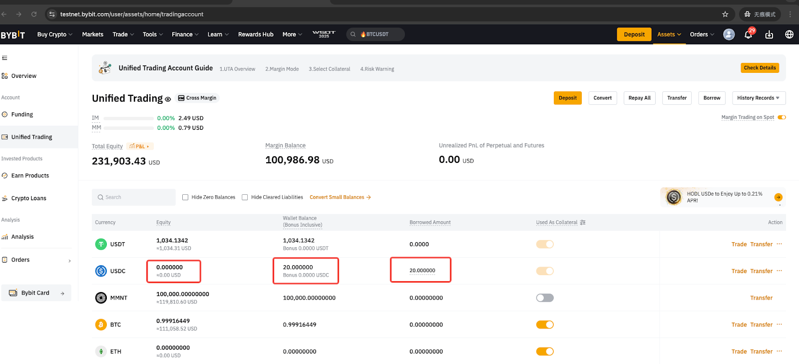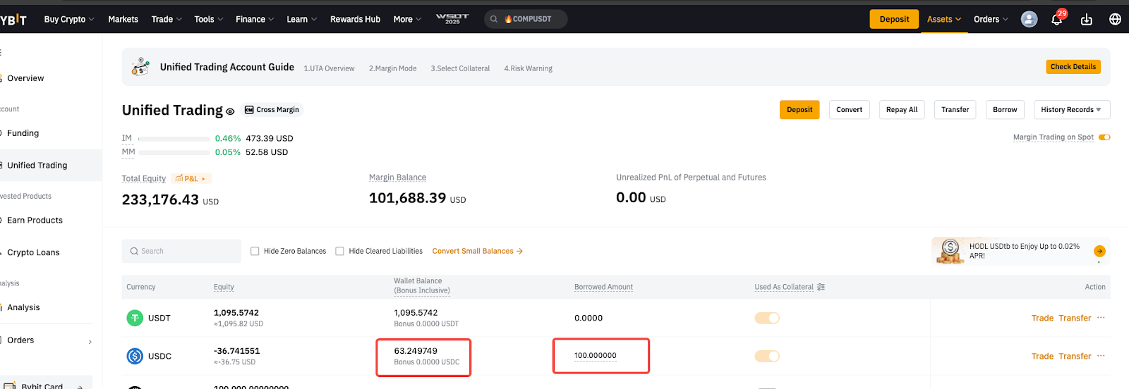 For example, if you borrowed BTC but don't currently hold any, buying BTC with USDT via the BTC/USDT Spot pair will automatically count as a repayment. The BTC you receive is treated as if it were transferred into your Unified Trading Account.