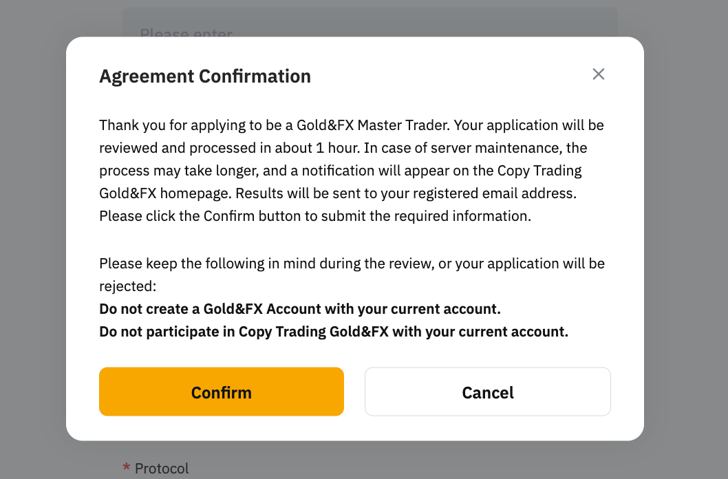 Nota: evita crear una cuenta de TradFi o seguir a otros Master Traders durante el periodo de revisión de la solicitud, ya que esto puede afectar a tu elegibilidad.
