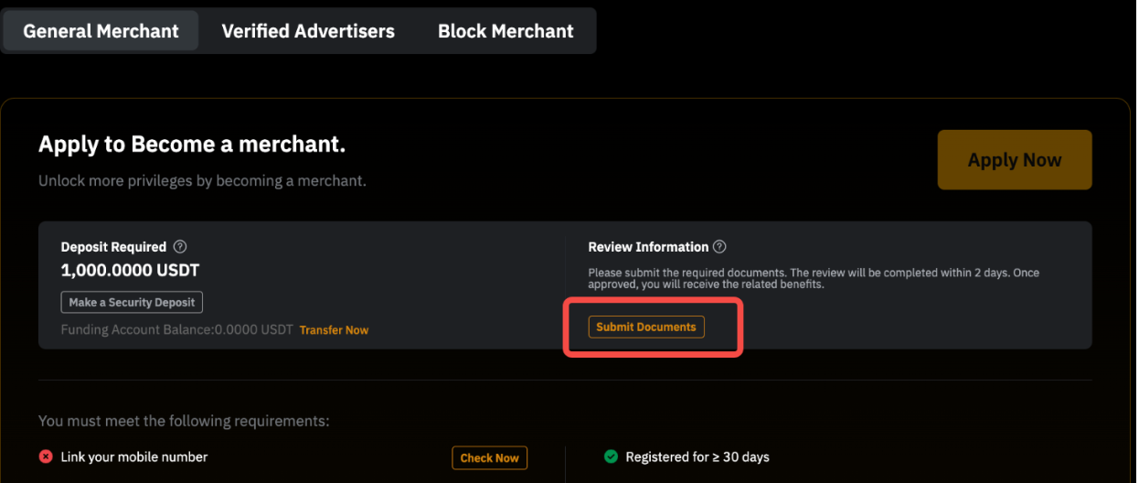 Paso 1: Ve a la página Privilegios del anunciante en el sitio web de Bybit, desplázate hasta la parte inferior y selecciona el tipo de anunciante que deseas ser.
