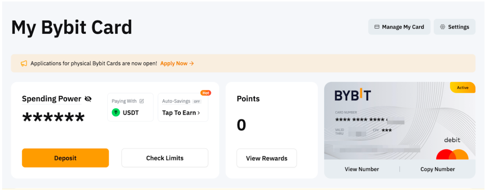 Harap segera melaporkan Kartu Bybit Anda sebagai Hilang/Dicuri. Untuk mempelajari lebih lanjut tentang cara memproses, silakan lihat Keamanan dan Verifikasi.