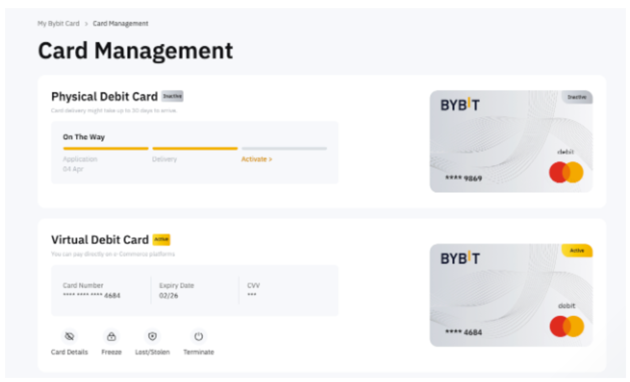Kini, Anda dapat mengelola Kartu Bybit virtual dan fisik Anda pada laman Manajemen Kartu.