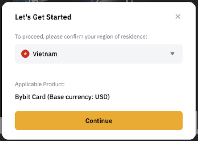 Catatan: Kartu Bybit saat ini hanya tersedia di negara yang terbatas. Jika negara tempat tinggal pilihan Anda tidak termasuk dalam negara yang didukung, kami akan mendaftarkan minat Anda saat ini dan memberi tahu Anda kapan Kartu Bybit akan hadir di negara Anda.