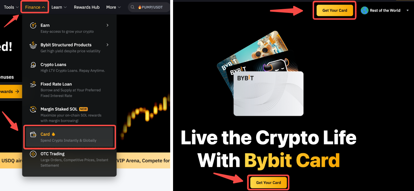 Langkah 1: Buka Keuangan → Kartu. Klik Daftar Sekarang di banner Aplikasi Kartu Bybit fisik.