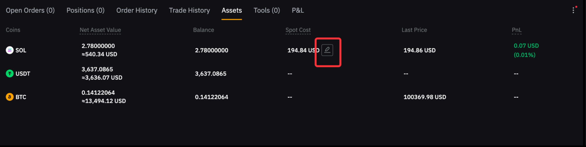 Langkah 1: Gulir ke Aset di bagian bawah laman, lalu klik ikon edit di samping nilai Biaya Spot yang ditampilkan.