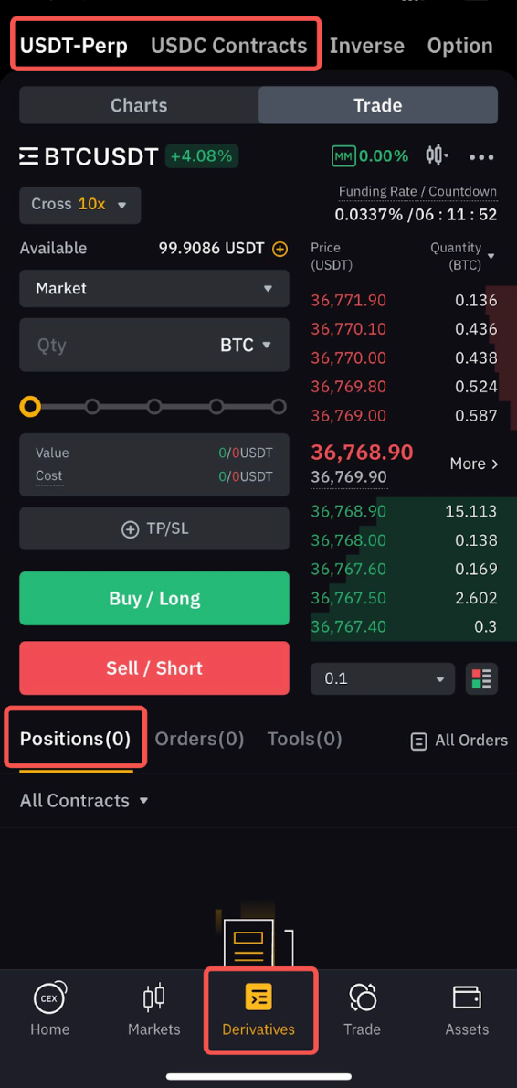 • To view your position, you can go to the Perpetual & Futures Trading page → Positions.