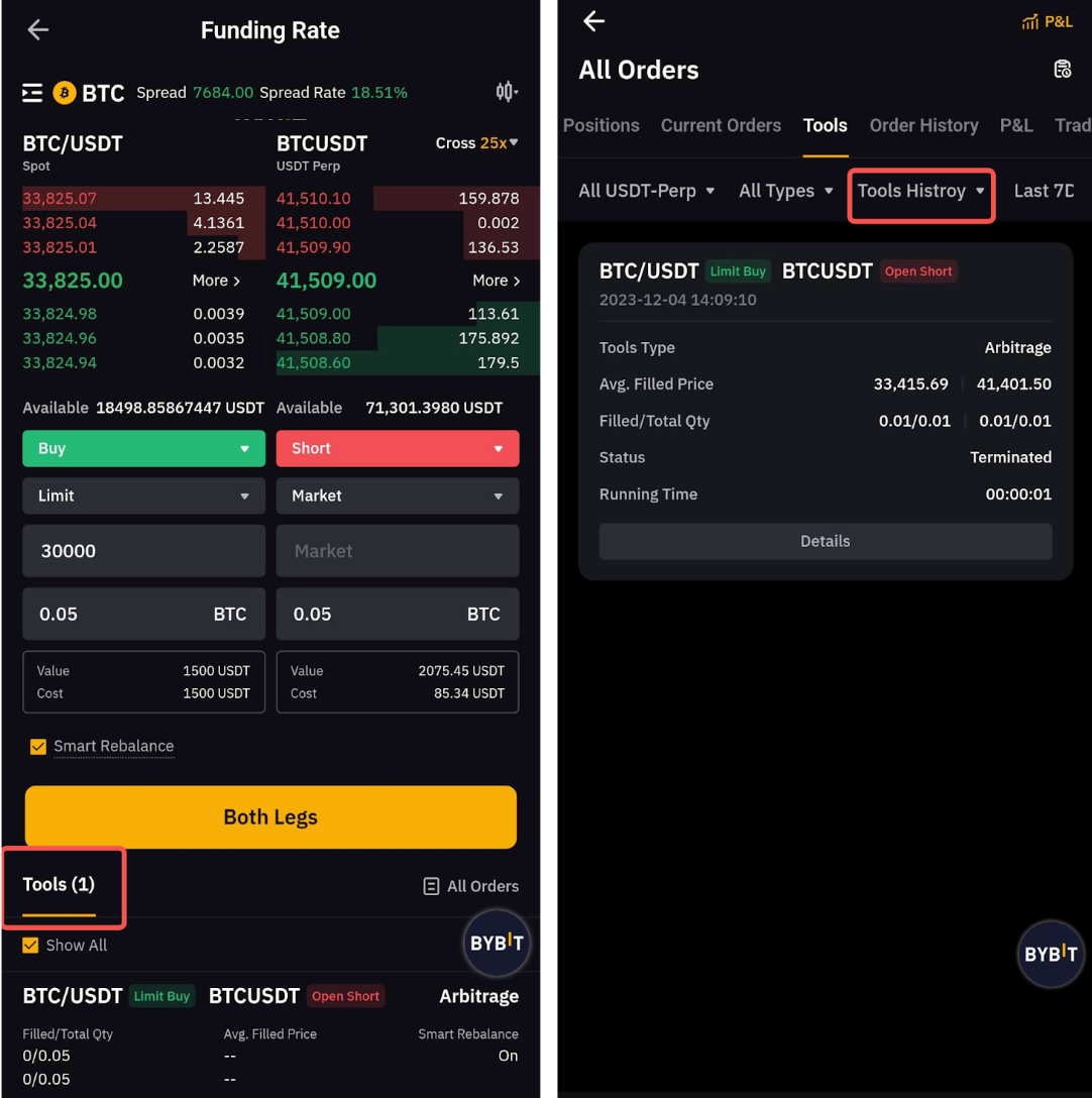 Currently, Arbitrage tools are only available on the Bybit App, exclusive to UTA users in Cross Margin mode. To upgrade to UTA, please refer to this article