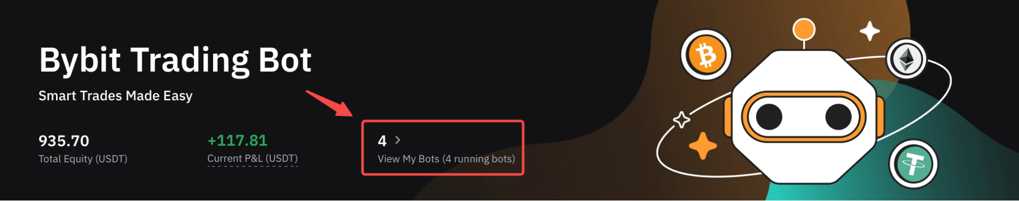 1º passo: Clique em Visualizar meus bots no robô de trading da Bybit para entrar na página Meus bots.