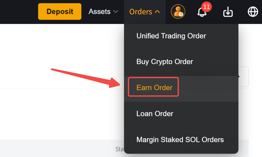 Como alternativa, vá para Ordens na barra de navegação e clique em Ordens do Earn.