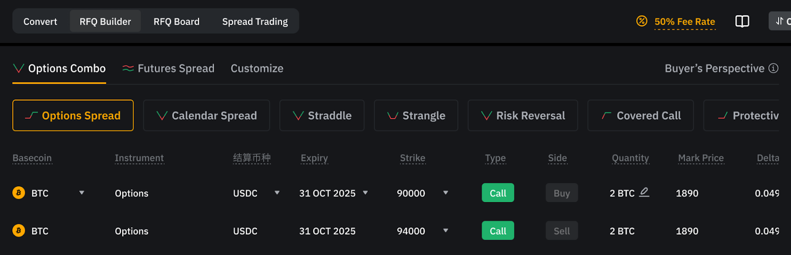 Observação: Somente posições que atendam ao tamanho mínimo de trade podem ser fechadas via RFQ.