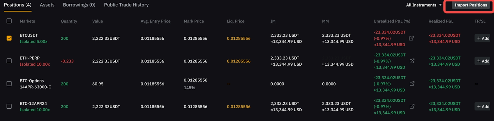 Você também pode enviar uma RFQ para fechar suas posições existentes com o recurso Importar Posição.
