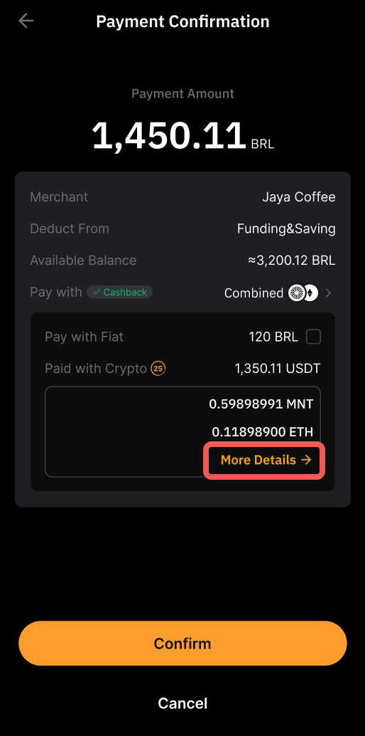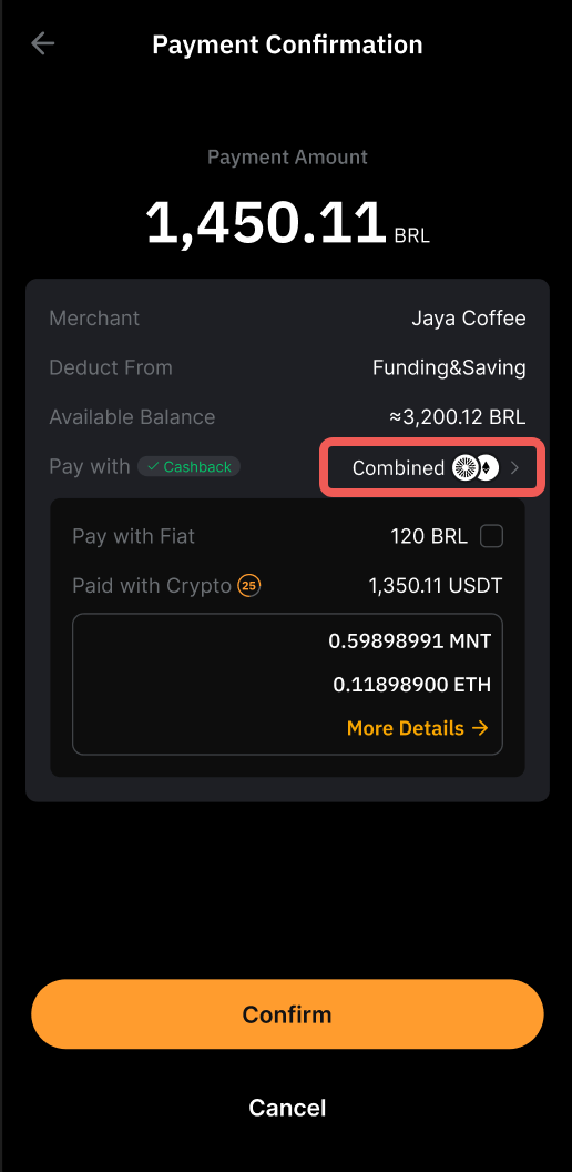 Se o botão Combinado estiver ativado e sua conta de Financiamento tiver USDT insuficiente, os fundos de sua conta de Ganho serão usados com base em sua prioridade de pagamento definida.