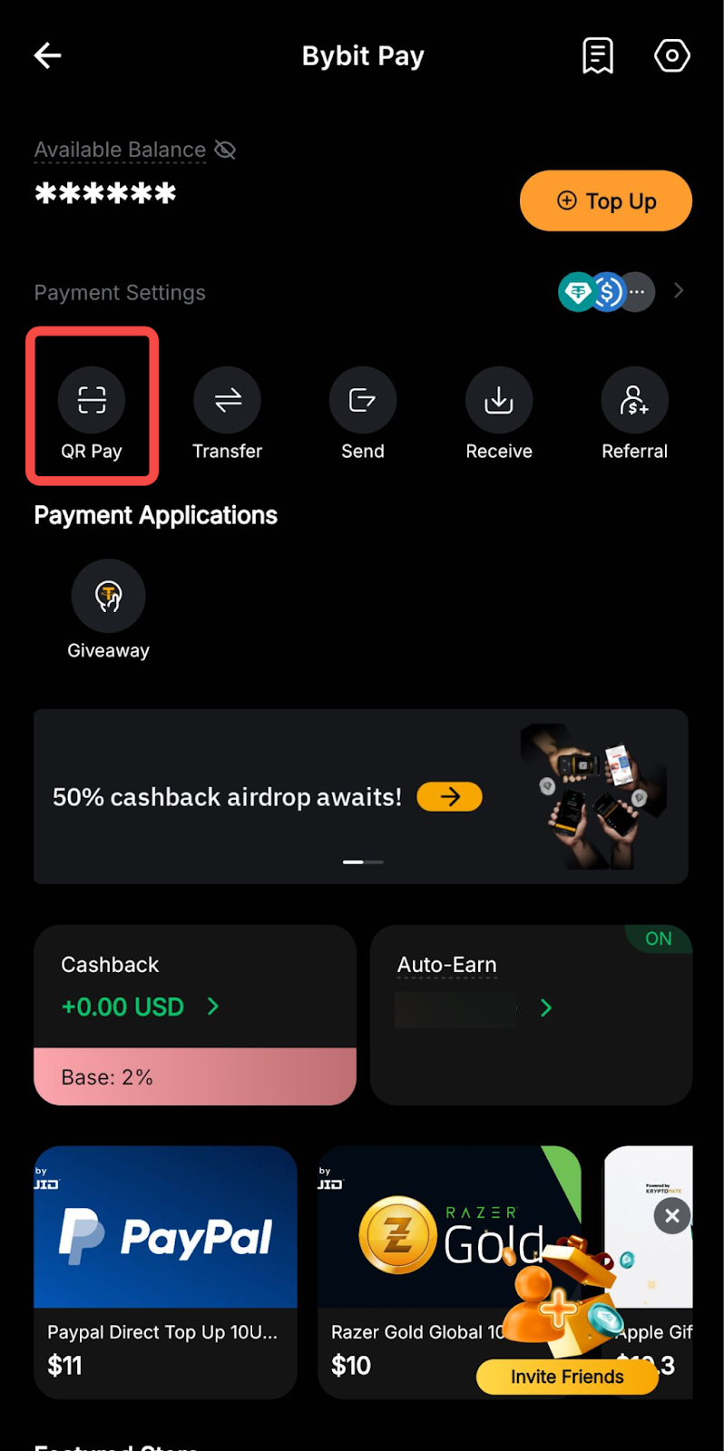 O recurso de pagamento QR do Bybit Pay permite que os usuários concluam transações simplesmente digitalizando um código QR com seu dispositivo. Ele oferece uma maneira rápida, segura e conveniente de transferir fundos ou fazer compras usando criptomoedas suportadas pelo Bybit Pay, melhorando a experiência geral de pagamento.