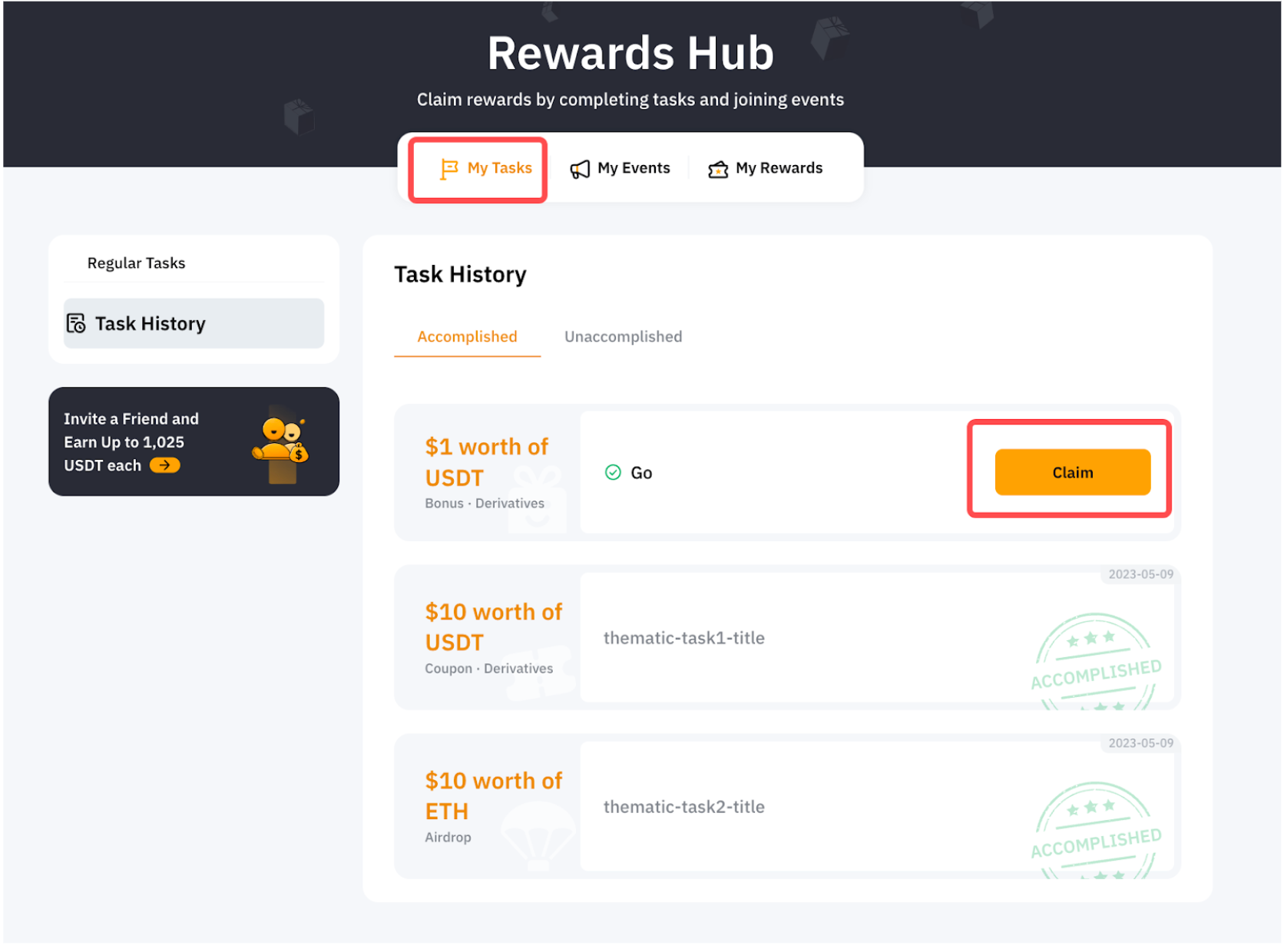 Шаг 2. Нажмите « Мои задания » и выберите «История  заданий», чтобы получить бонус в разделе «Выполнено».