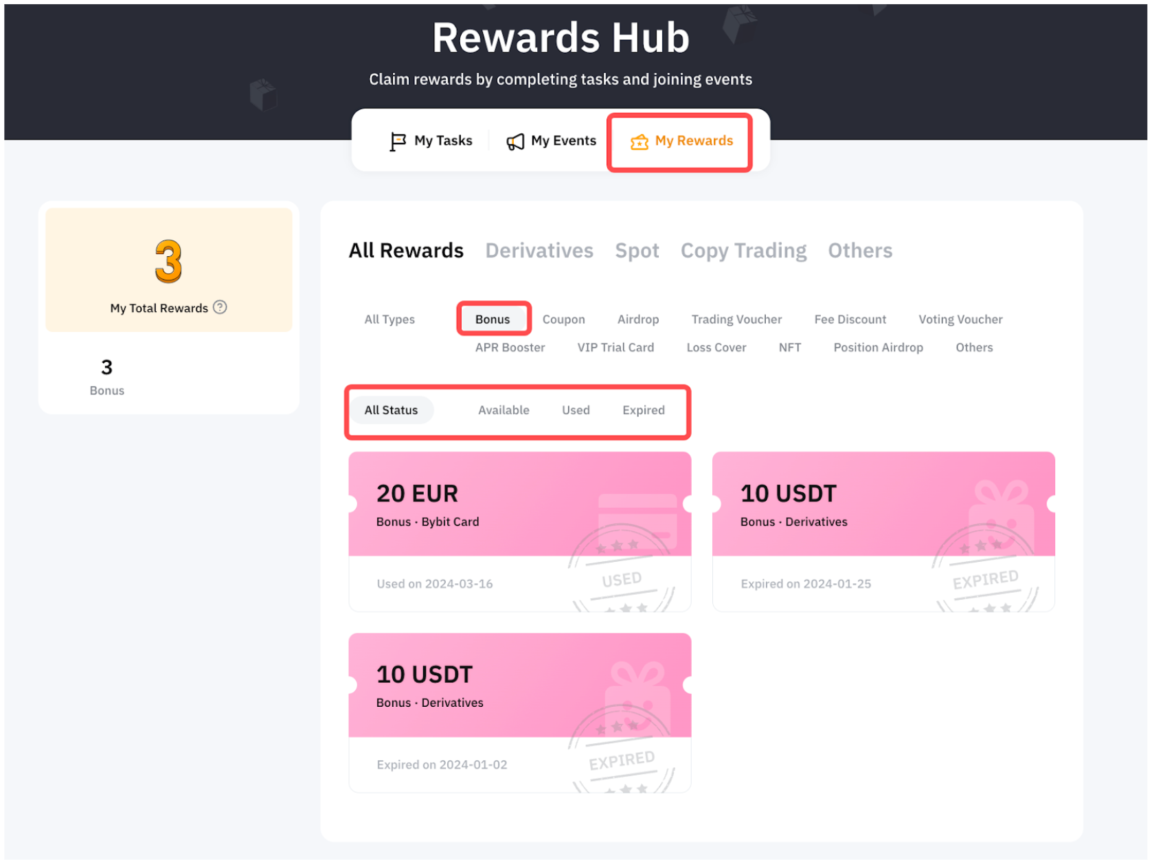 Шаг 3. Чтобы просмотреть информацию о полученных наградах, перейдите в раздел Мои награды и выберите Бонус , чтобы проверить все полученные награды.