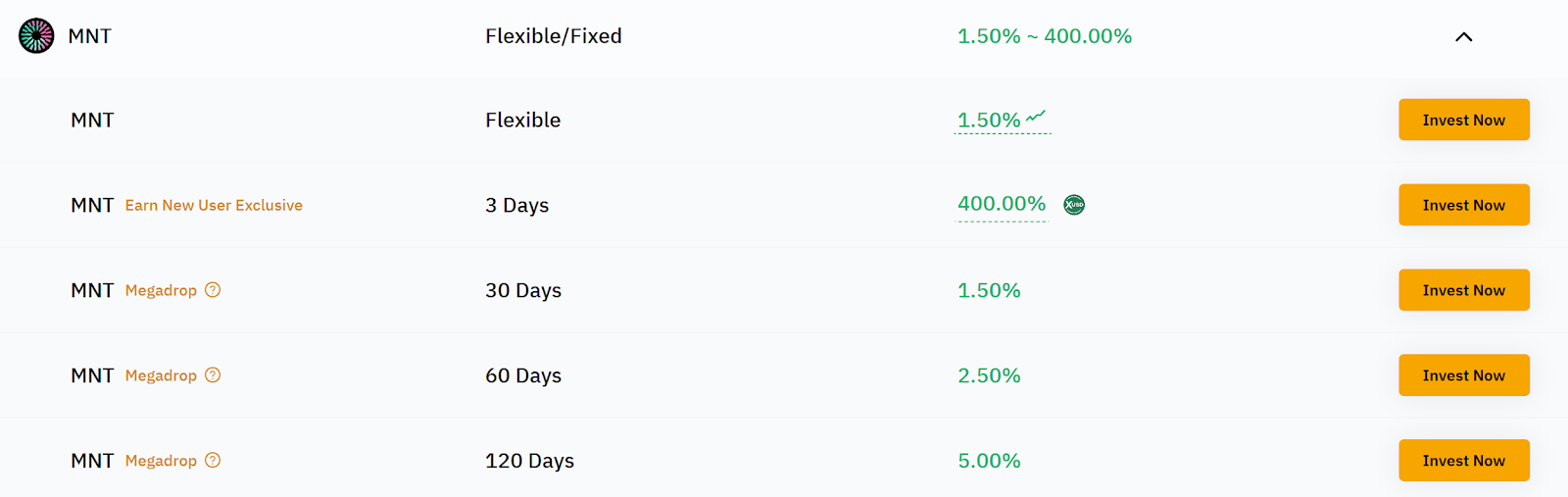 Удерживайте MNT в гибких или фиксированных планах Easy Earn для получения конкурентной прибыли.