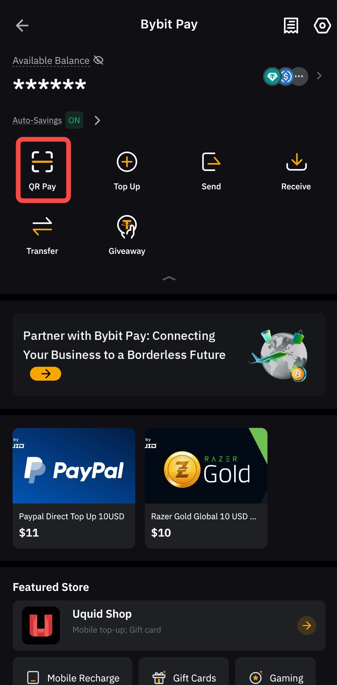 Наразі Платіж за QR-кодом доступна лише в застосунку Bybit. Спочатку користувачі повинні пройти перевірку, а потім натиснути на значок Платежу за QR-кодом, щоб почати.