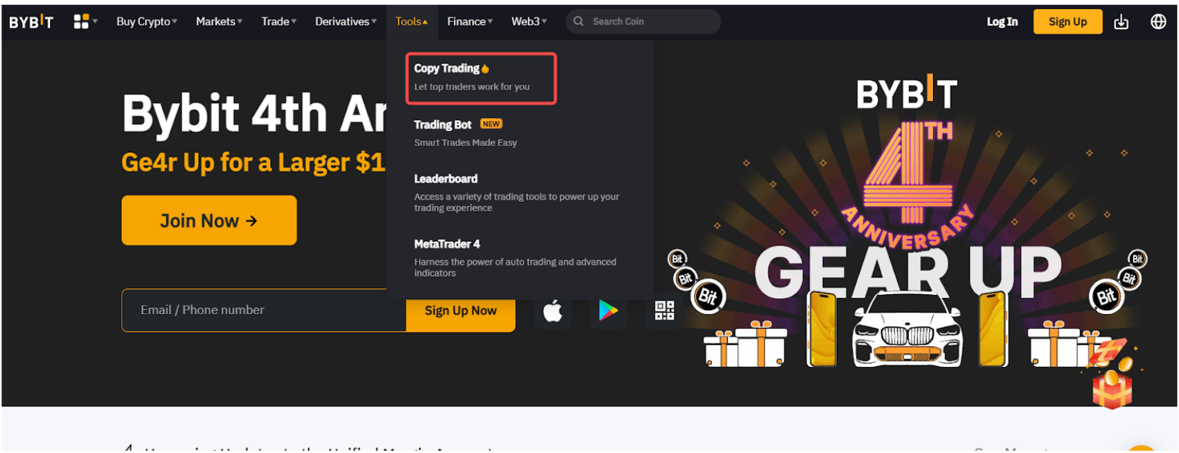 Крок 1. Натисніть Інструменти –> Копітрейдинг на навігаційній панелі, щоб перейти на сторінку Копітрейдинг.