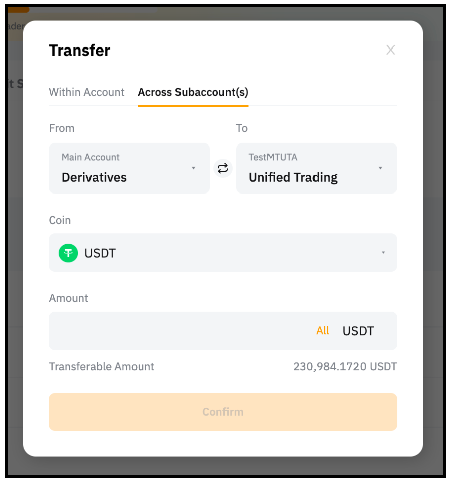 Вам потрібно буде переказати кошти на свій деривативний акаунт або Єдиний Торговий Акаунт (для користувачів UTA) у своєму субакаунті майстер-трейдера.