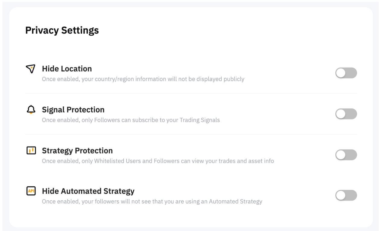 У розділі «Налаштування конфіденційності» ви можете керувати відображенням вашого розташування, захистом сигналу, захистом стратегії або приховати автоматичну стратегію від загалу.