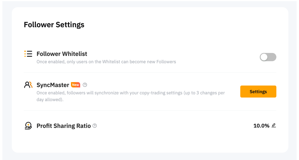 У розділі «Налаштування підписників» ви можете керувати білим списком підписників, SyncMaster і коефіцієнтом розподілу прибутків.
