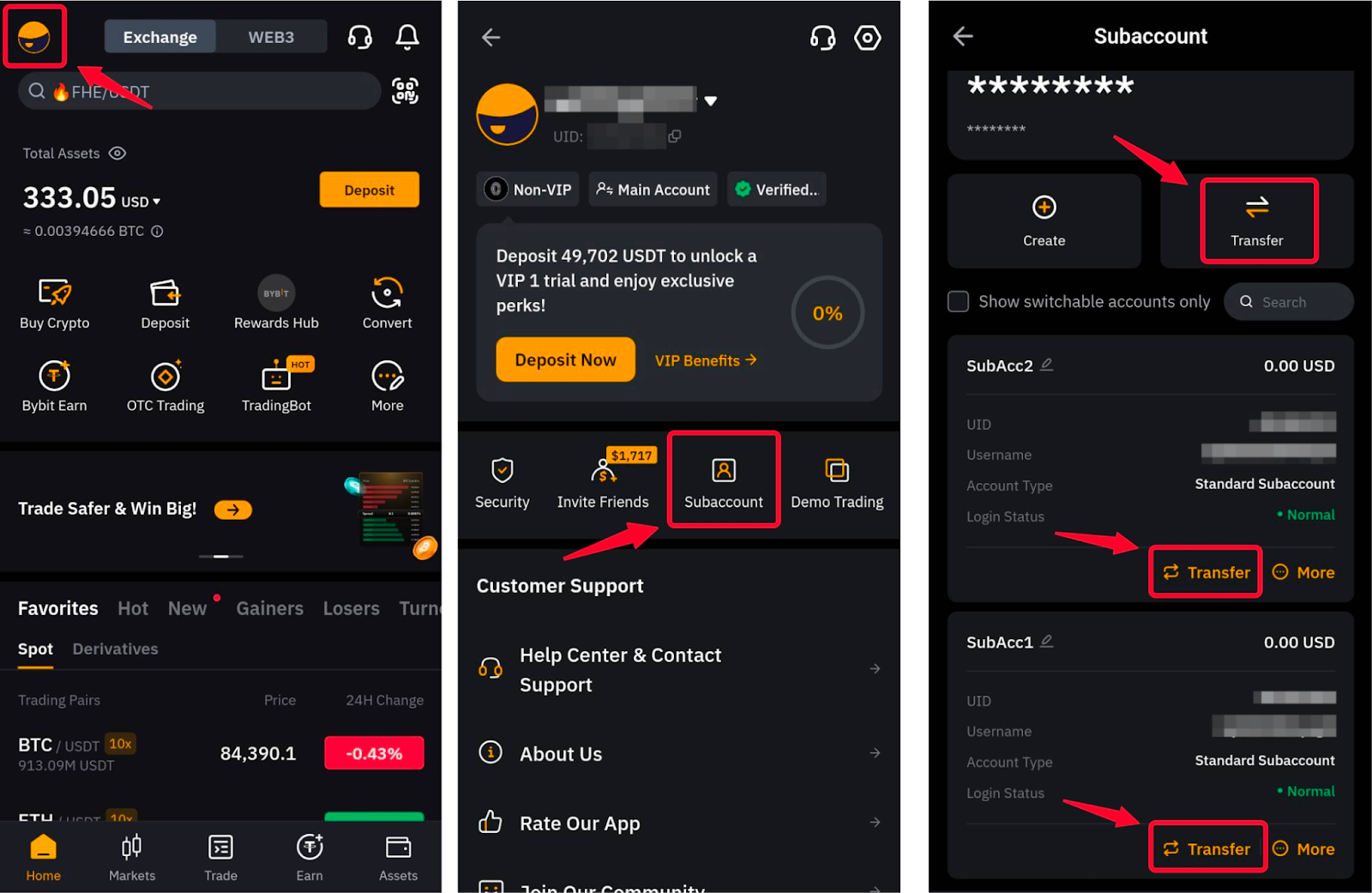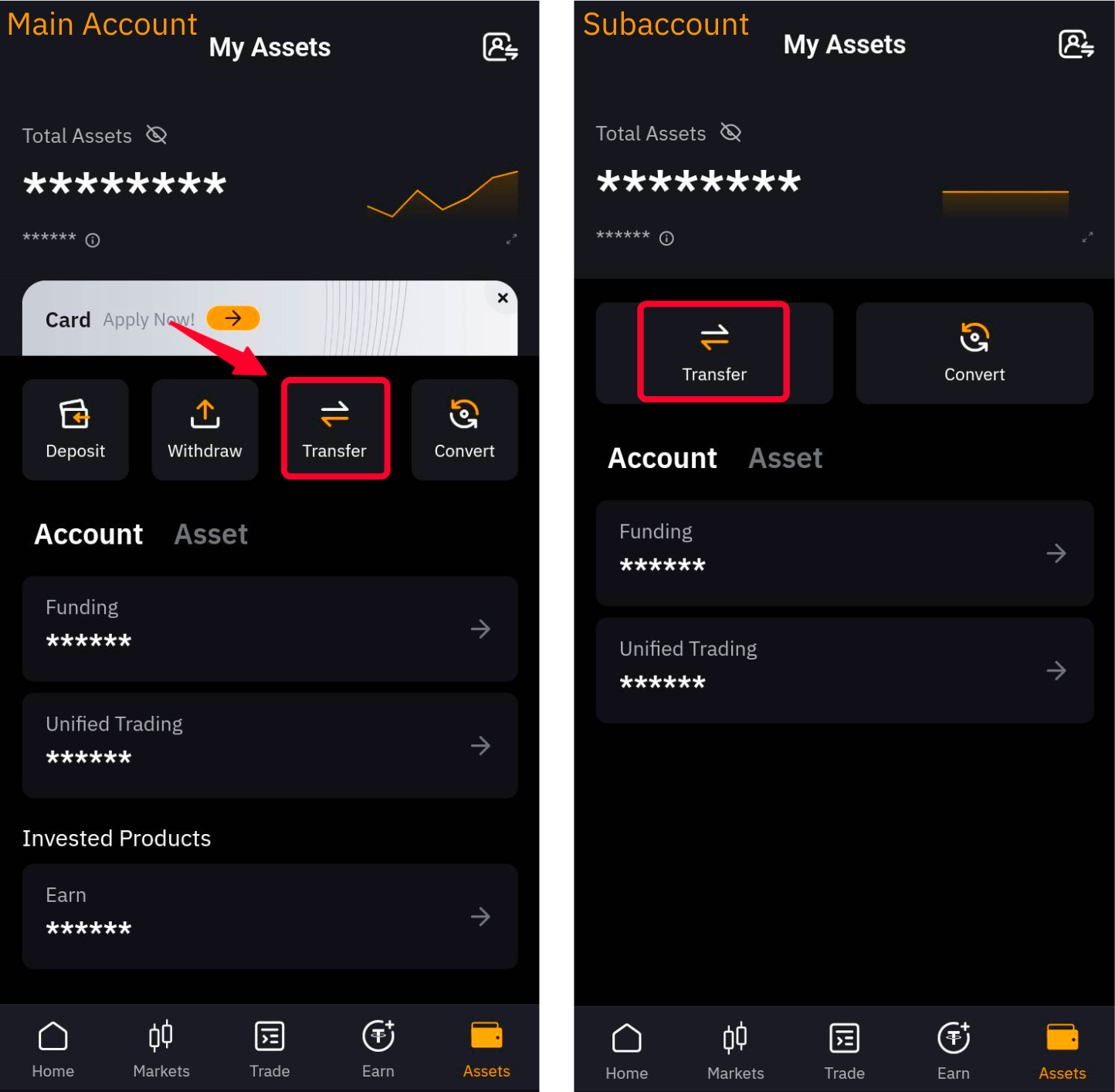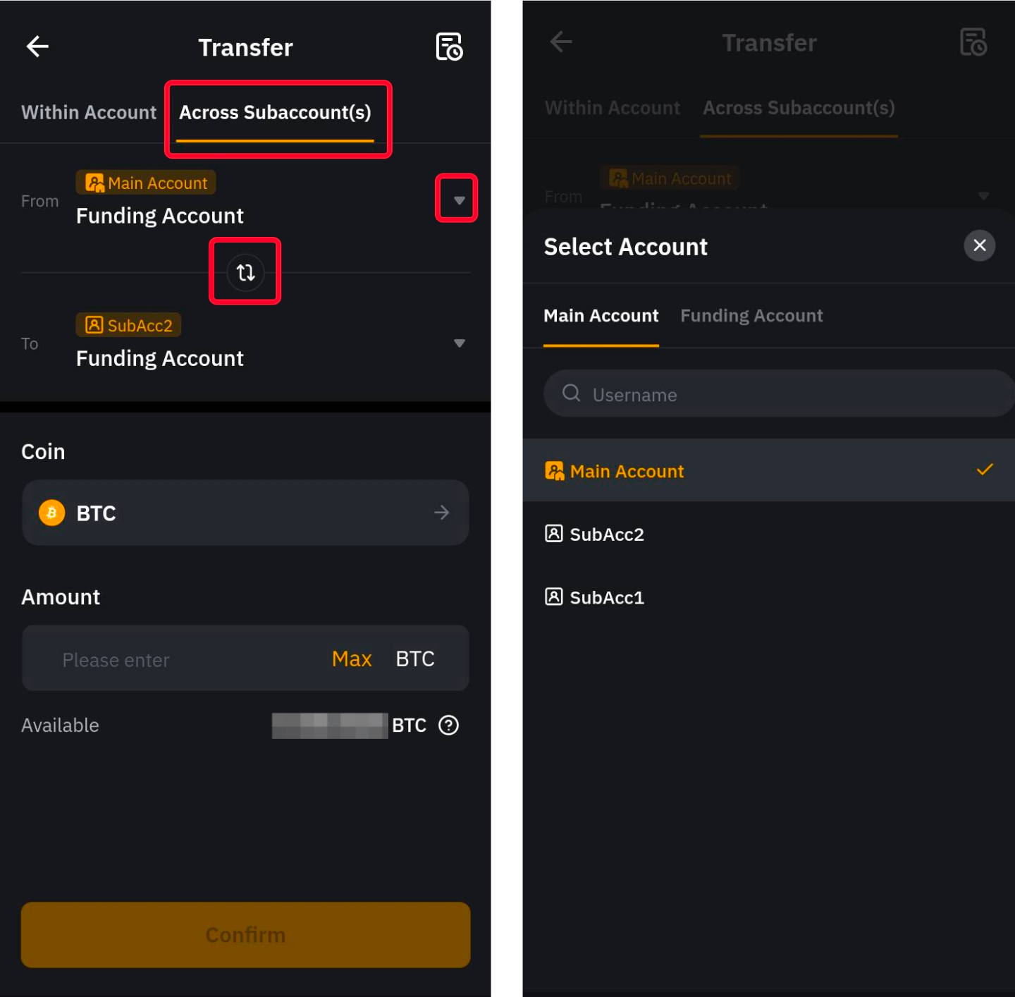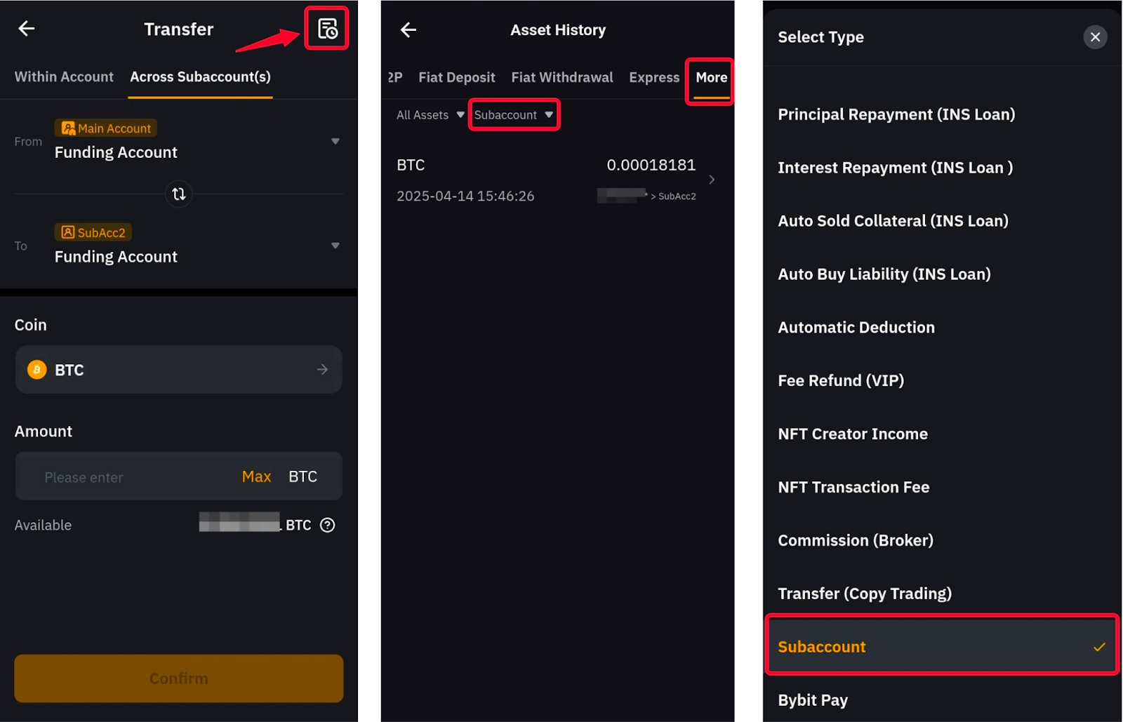 Ви можете натиснути Переказ на сторінці Субакаунта вашого основного акаунта, щоб миттєво переказати активи між будь-якими акаунтами без жодних комісій.