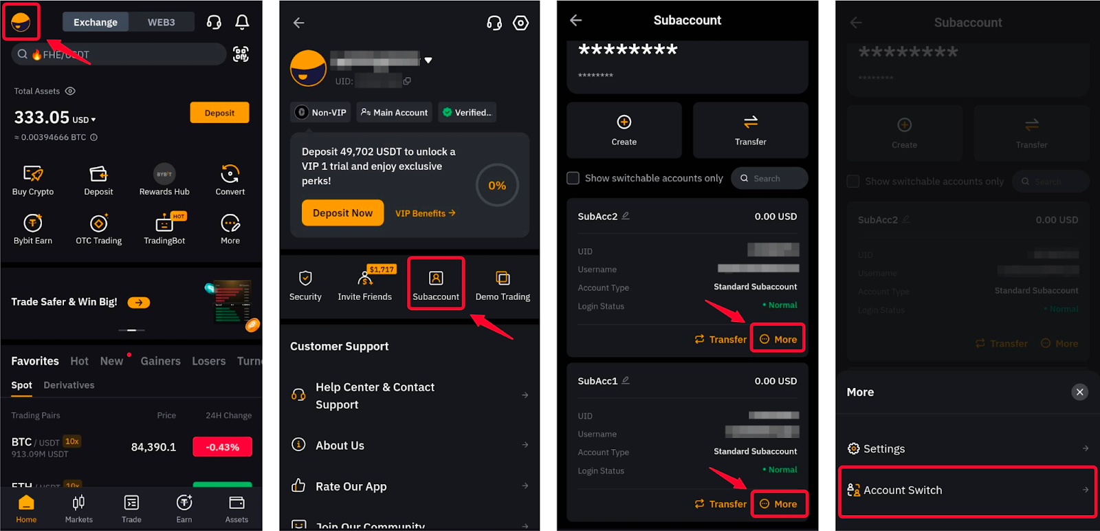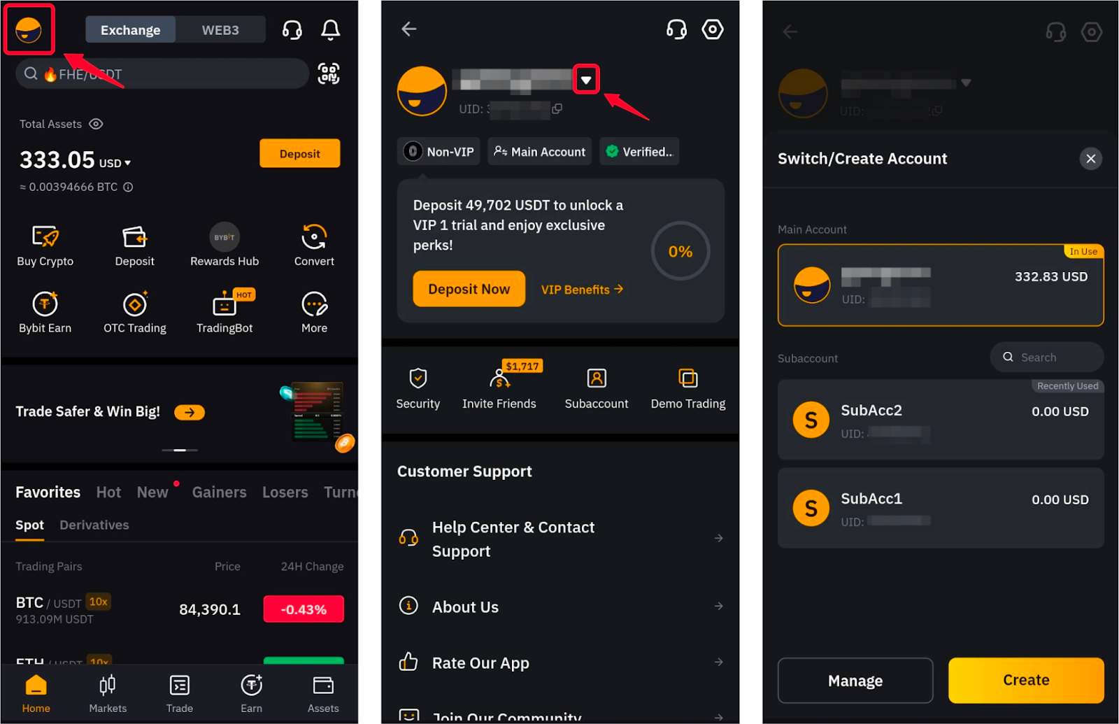 Тепер Bybit пропонує користувачам зручність без зусиль перемикатися між їхніми різними акаунтами за допомогою функції перемикання акаунта. Ви зможете перемикатися між вашими акаунтами трьома (3) різними способами: