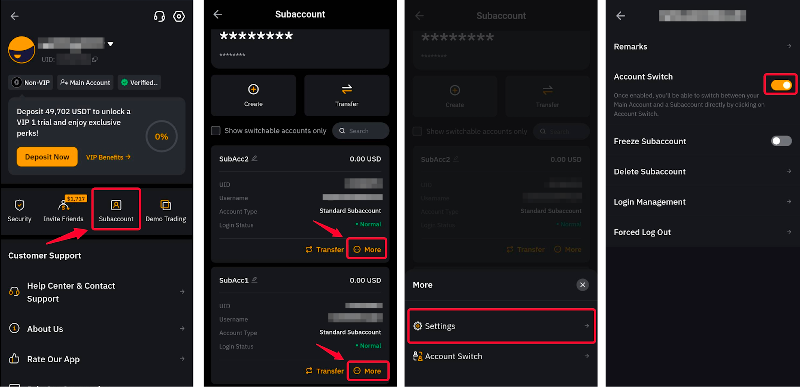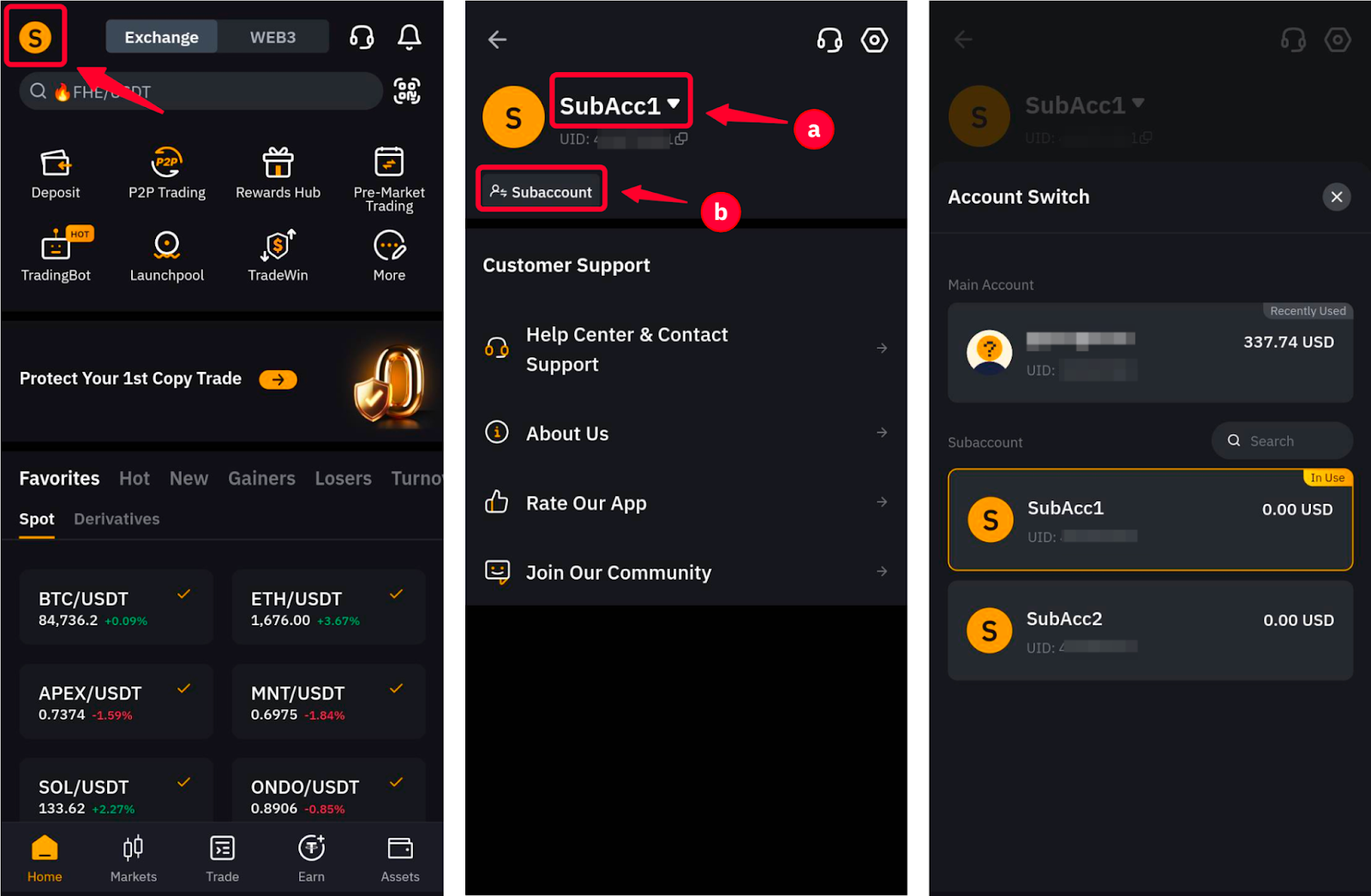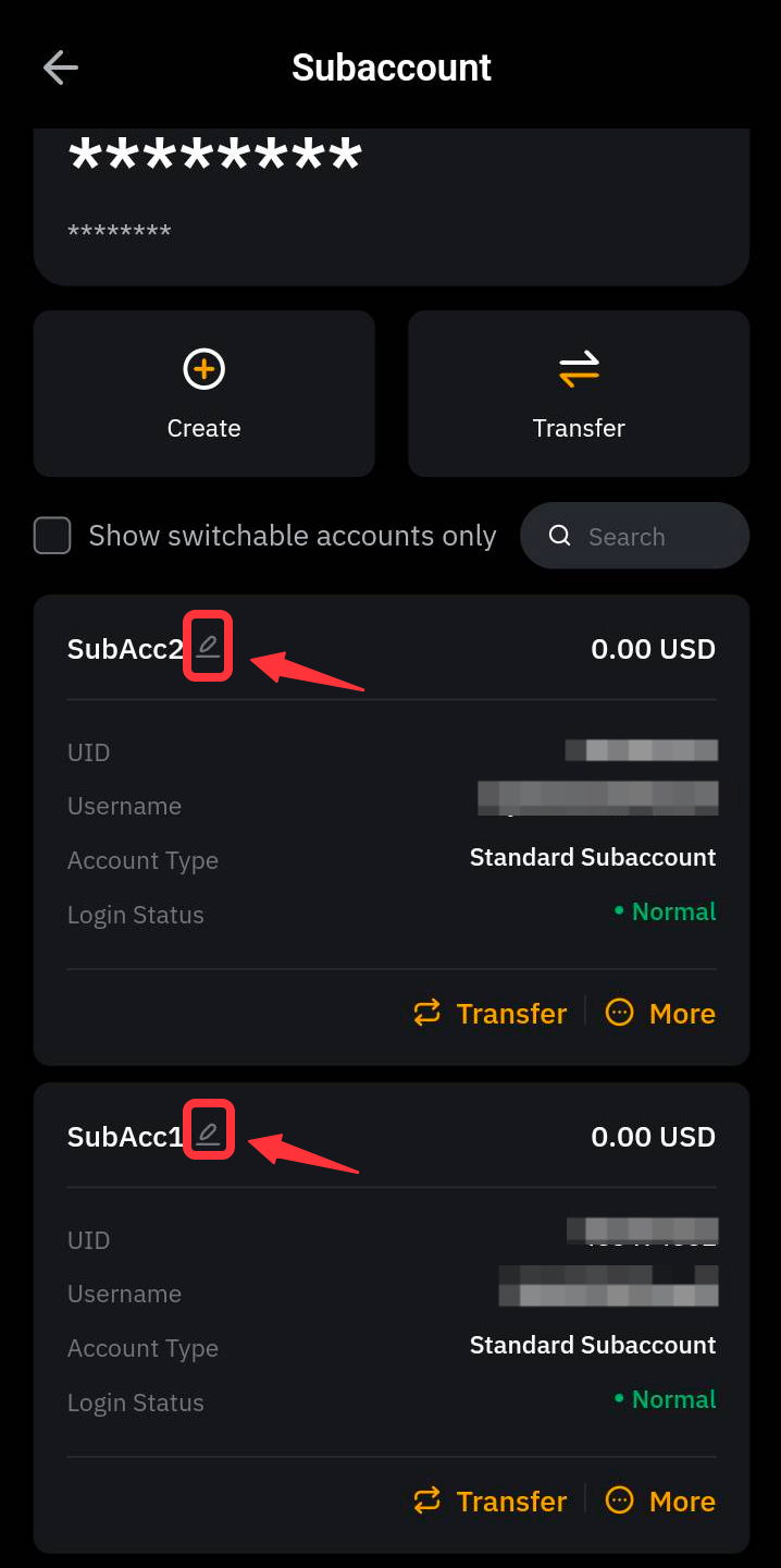 — Перемикач акаунта недоступний для кастодіальних торгових субакаунтів, заморожених субакаунтів або коли перемикач акаунта чи дозвіл на вхід вимкнено.