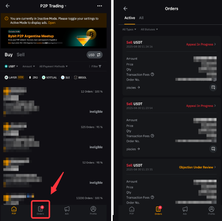 Ви можете переглянути історію ордерів, перейшовши до Ордерів на сторінці P2P-трейдинг.