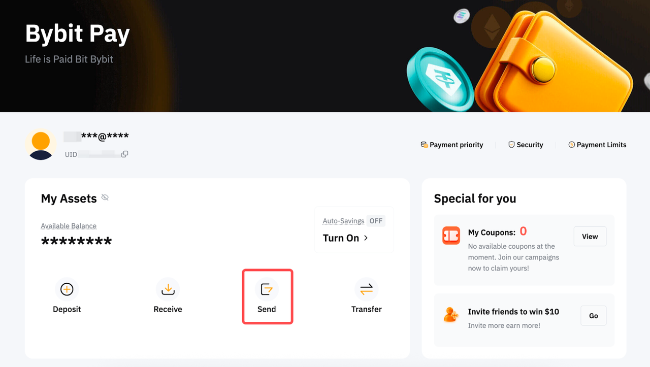 Ось покрокова інструкція щодо того, як надіслати платіж за допомогою Bybit Pay.