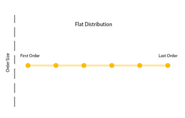 • Рівномірний або Рівний розподіл  рівномірно розподіляє ордери та ціни залежно від кількості ордерів.