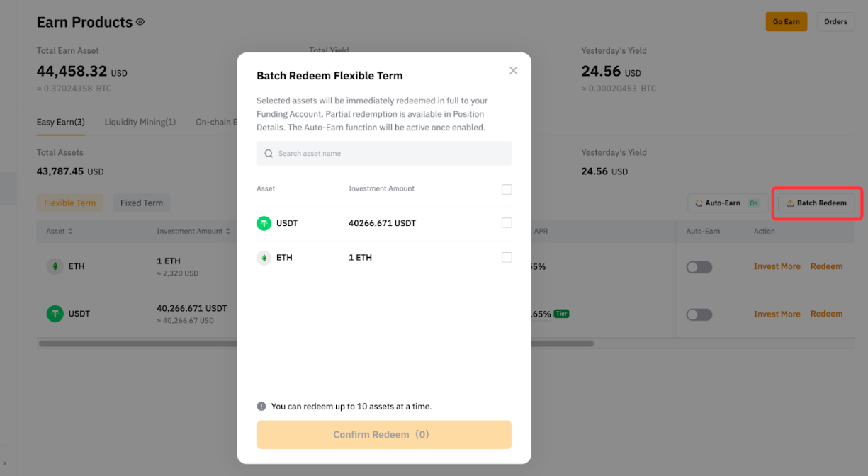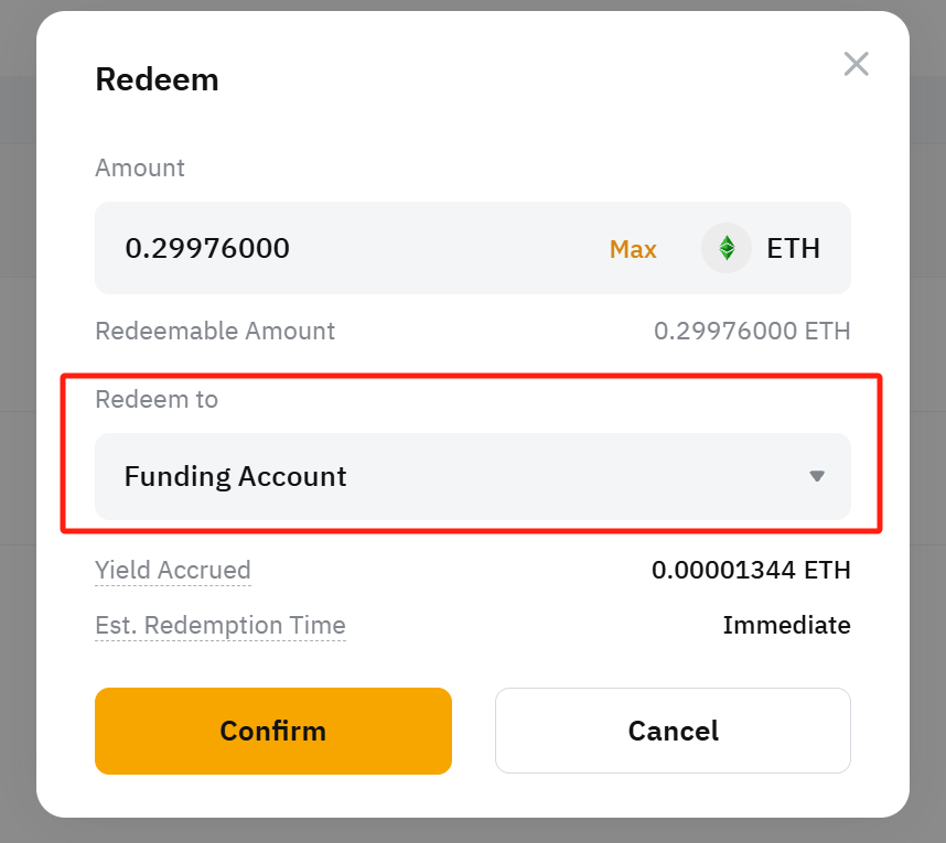 Bạn cũng có thể chọn quy đổi vốn gốc về Tài Khoản Vốn hoặc Tài Khoản Giao Dịch (UTA). Tuy nhiên, lợi nhuận sẽ luôn được ghi có vào Tài Khoản Vốn của bạn.