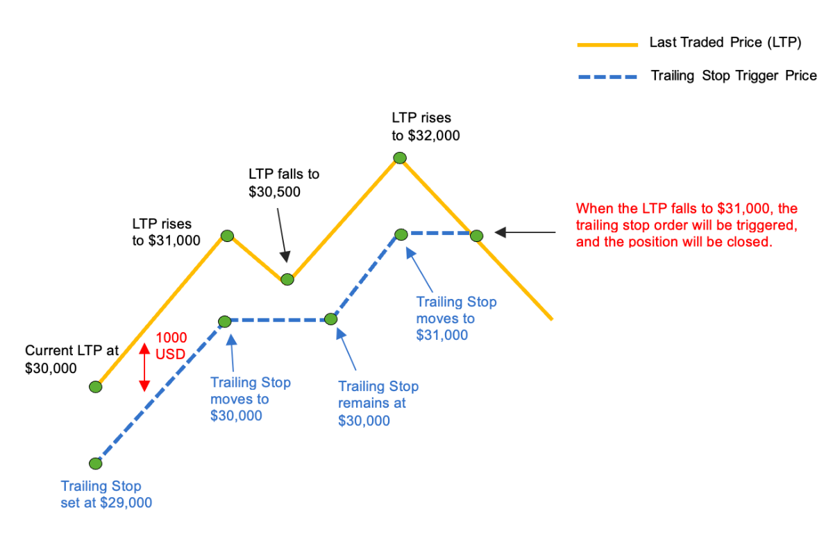 如果最新成交价从未超过 $30,000,追踪订单将以 $29,000 触发,类似于正常止损。