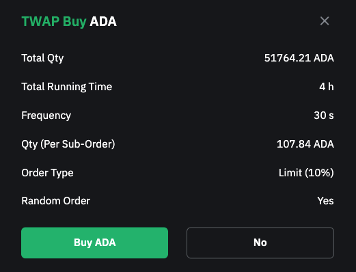 第 2 步:輸入您的參數創建您的 TWAP 訂單: